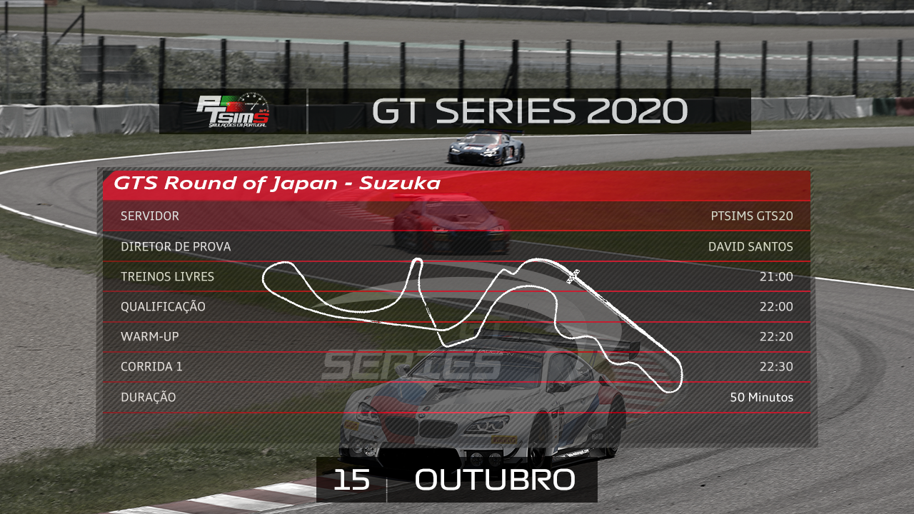 Em virtude dos problemas técnicos que afetaram ontem (08/10) o servidor da prova Nº3 do GT Series 2020, a Organização informa que tomou a decisão de anular a mesma. Isto significa que todos e quaisquer eventos da prova em questão não serão contabilizados de forma alguma. A prova de Paul Ricard, na sua totalidade, será re-agendada para o final do campeonato, em data a anunciar assim que possível.